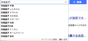 リアルタイムのサジェストに「矢島晶子 クレヨンしんちゃん」「矢島晶子 降板」などのキーワードが出てきていますよね。これはかなりYahooのサジェストと同様に需要が高いキーワードです。