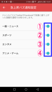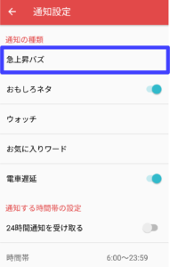 ❷急上昇バズ通知設定の中にある項目をみていきましょう。