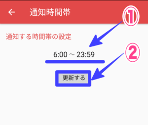 以上の手順で通知を受け取る時間帯を選び、設定をすることができます。