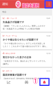 ❶通知設定→「急上昇バズ」という表示をクリックしましょう。