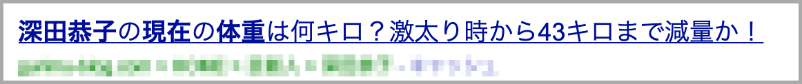 まず検索者が深田恭子の体重(今の)知りたい場合は、このタイトル見て「え?今60キロなの?」「ほんとに?」といった思考が働くことや、